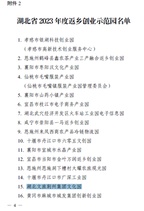 湖北文旅荊州集團文化園獲批湖北省2023年度返鄉(xiāng)創(chuàng)業(yè)示范園
